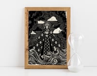 Portrait of Our Lady as Stella Maris, Star of the Sea. Drawn digitally in a relief print style, this portrait can help to remind you that our mother is always there for us, calmly offering a lifeline in the storms of life.